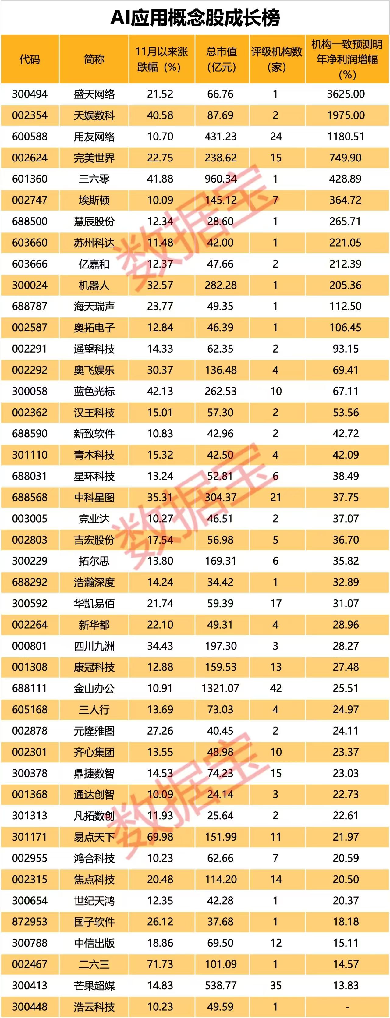 从业绩表现来看,盛天网络、天娱数科、用友网络等机构一致预测明年净利增速均超10倍。