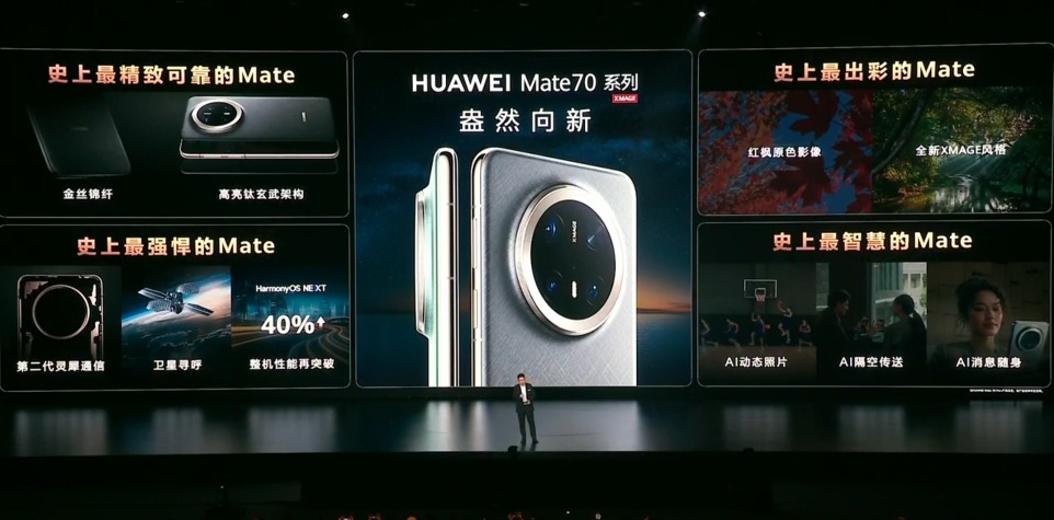 余承东称,华为Mate 70是史上最精致可靠、史上最强悍、史上最出彩、史上最智慧的Mate。