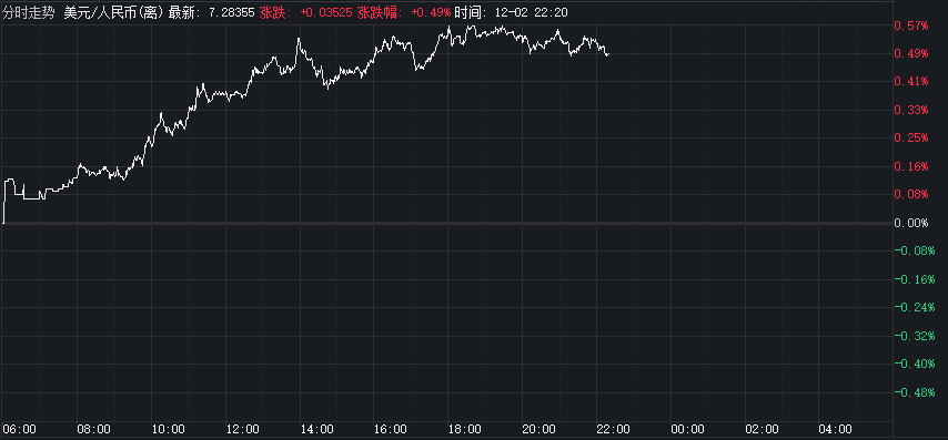 12月的首个交易日,在岸和离岸市场人民币双双出现贬值。当日,离岸人民币对美元汇率开盘跌破7.25,随后进一步跌破7.29关口,盘中最低至7.2957,较前一交易日下跌超400个基点,创下7月以来新低。