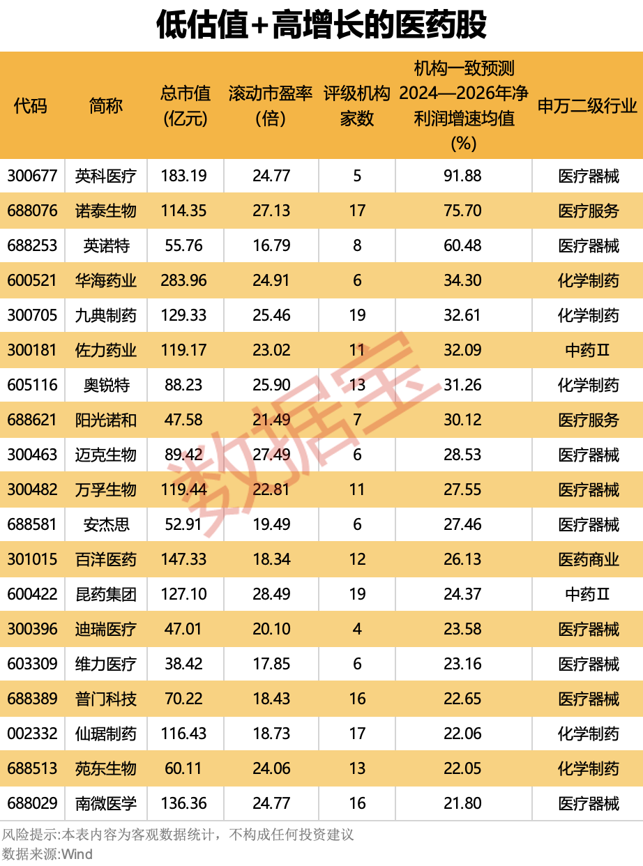 根据机构一致预测,2024年—2026年净利润增速均有望超20%的医药股有19只。