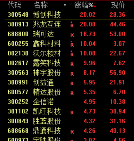 AI硬件端走强,铜高速连接方向领涨,博创科技、兆龙互连、鑫科材料、沃尔核材、露笑科技等涨停。