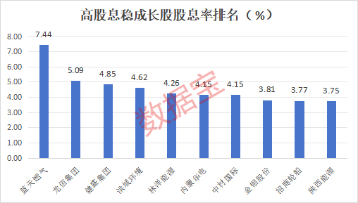 从股息率角度来看,蓝天燃气位居第一位,该股去年每股分红达0.85元,最新价11.43元,折合股息率达到7.44%。此外,龙佰集团、健盛集团、洪城环境、林洋能源、内蒙华电、中材国际等个股去年股息率均超4%。