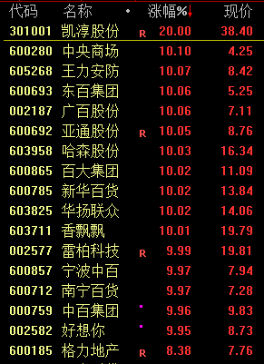 零售股尾盘走高,广百股份、东百集团、百大集团、中百集团、南宁百货等多股涨停。