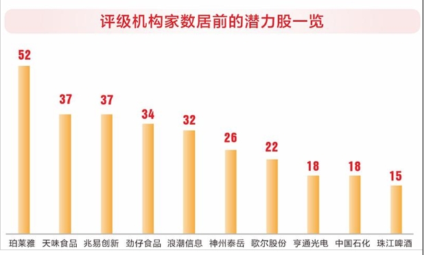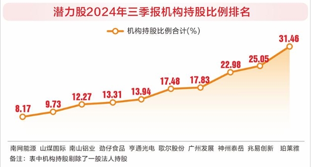 潜力股普遍获机构重仓,其中珀莱雅、兆易创新、神州泰岳、广州发展等个股机构持股比例超10%。