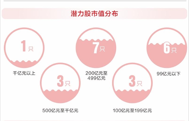 规模方面也体现出均衡特征,潜力股中既有逾7000亿元市值的中国石化,也有明星电力、光电股份、建霖家居等多只市值低于百亿元的个股,市值中位数不到230亿元,中盘成长属性较强。