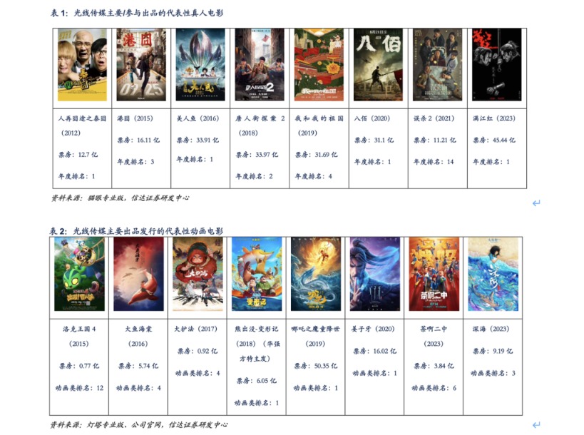 回溯发展轨迹,成立于1998年的光线传媒,以电视节目制作起家,创办《中国娱乐报道》等节目,开创了中国电视节目制播分离的先河。2006年,光线传媒涉足电影投资发行领域。此后,凭借《泰囧》《致青春》等爆款影片,成功跻身中国五大民营电影公司之列,2011年8月在国内创业板上市。