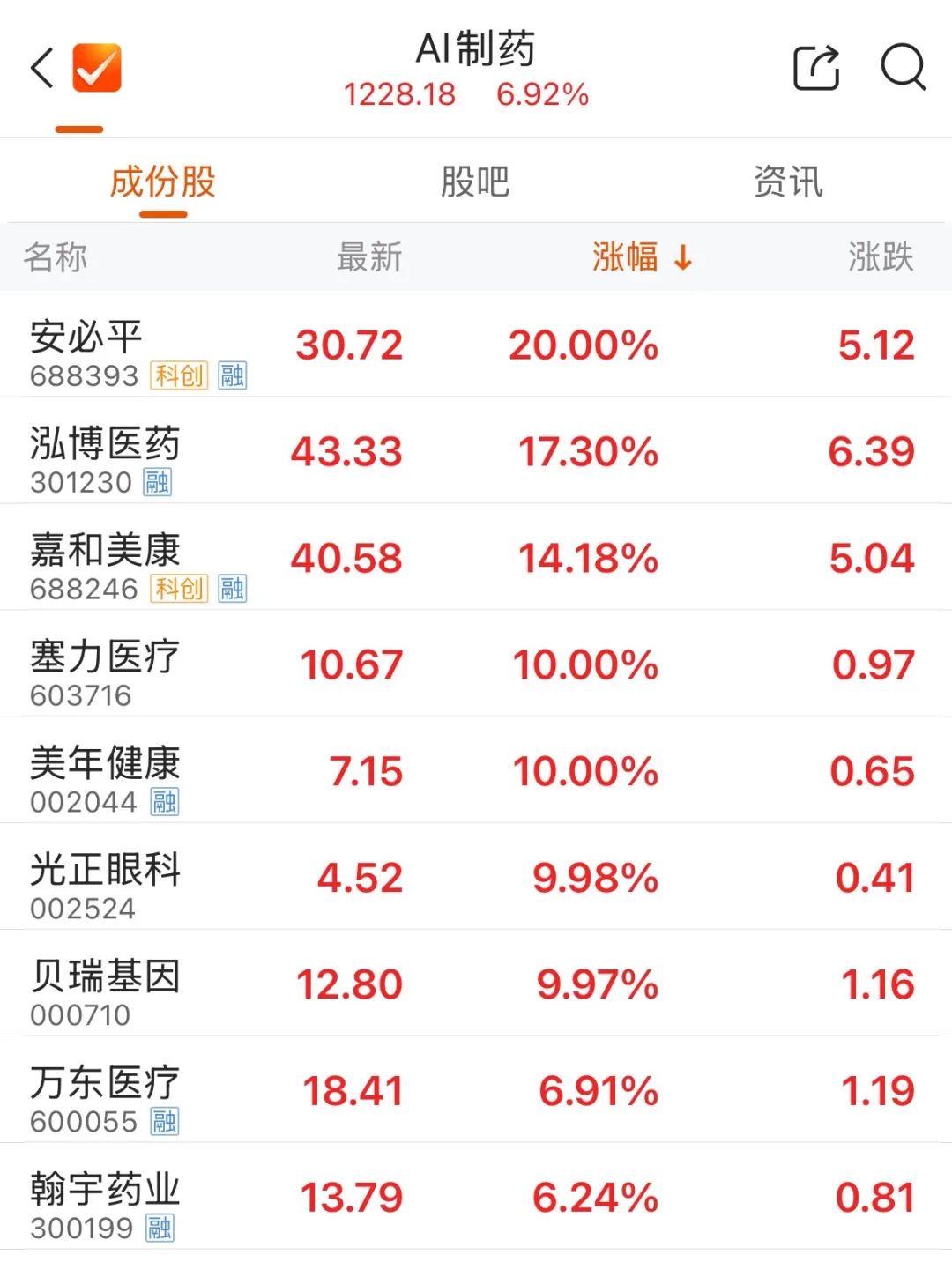 近期,国产AI大模型DeepSeek不断破圈,医疗领域成为最快落地的应用场景之一。AI医疗板块近期持续活跃,安必平连续两日“20cm”涨停,美年健康走出7天5板。截至午间收盘,安必平以20%幅度涨停,泓博医药、嘉和美康涨超10%,塞力医疗、美年健康、光正眼科、贝瑞基因等涨停。
