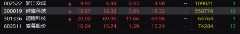 1月份的时候,市场曾炒作过一段时间的情感交互。彼时,苏豪弘业连续涨停。昨天,在DeepSeek的加持之下,这个题材再度发酵,浙江众成等股票涨停,今天,硅宝科技、浙江众成、趣睡科技、爱慕股份再度集体涨停。