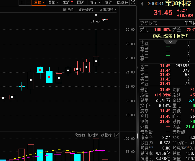 早盘最强势的个股当属宝通科技,开盘即20cm涨停,公司在近期的调研中透露了和宇树机器人合作的内容。