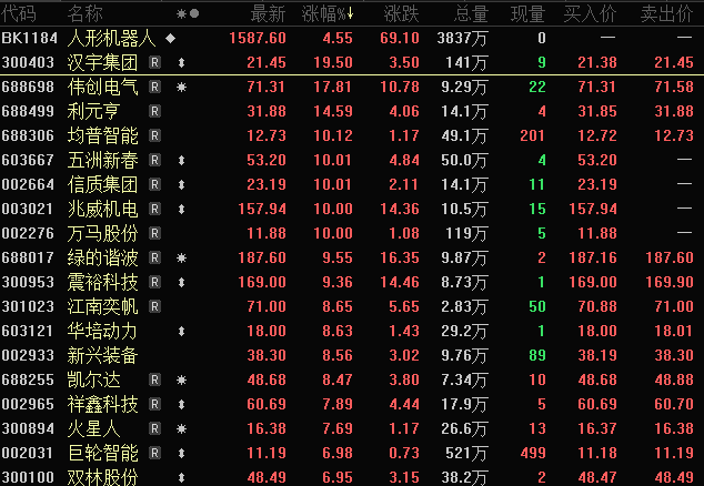 横河精密、力星股份等个股20cm涨停则是与减速器题材密切相关。西部证券表示,随着AI技术持续迭代,科技大厂和创业先锋企业相继入局人形机器人产业,人形机器人作为AI重要终端应用之一,有望迎来快速发展。该机构认为,精密减速器作为人形机器人的必备部件或将充分受益,国产替代空间广阔,已有相关产品布局或拟入局精密减速器赛道的企业有望迎来快速成长。