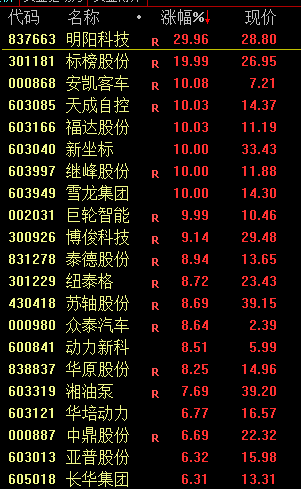 汽车板块拉升,安凯客车涨停。