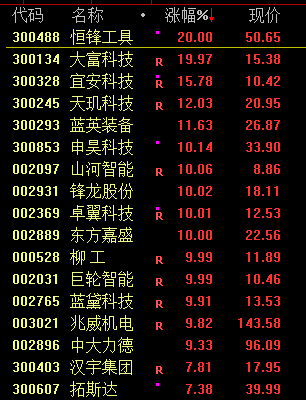 机器人概念股逆市走强,锋龙股份、卓翼科技、巨轮智能等多股涨停。