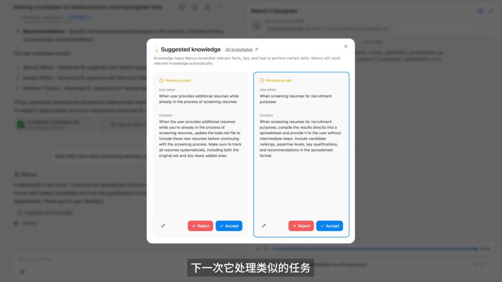 用户可以选择让Manus记住自己的使用习惯。来源:Manus