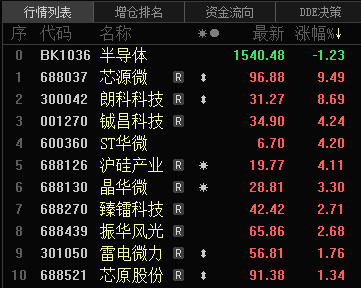 3月11日上午,A股半导体板块个股异动。芯源微早盘最高涨超15%,朗科科技、沪硅产业、至正股份、拓荆科技等冲高,北方华创冲高回落。