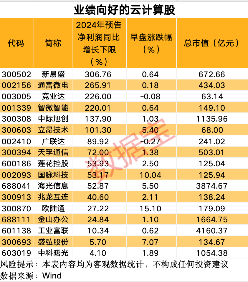 云计算概念早盘大涨
