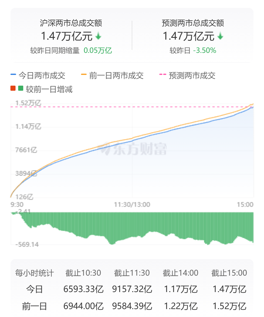 A股三大指数今日集体震荡整理,截止收盘,沪指跌0.10%,收报3426.43点;深证成指跌0.32%,收报10979.05点;创业板指跌0.28%,收报2222.35点。沪深两市成交额达到14664亿,较昨日缩量532亿。