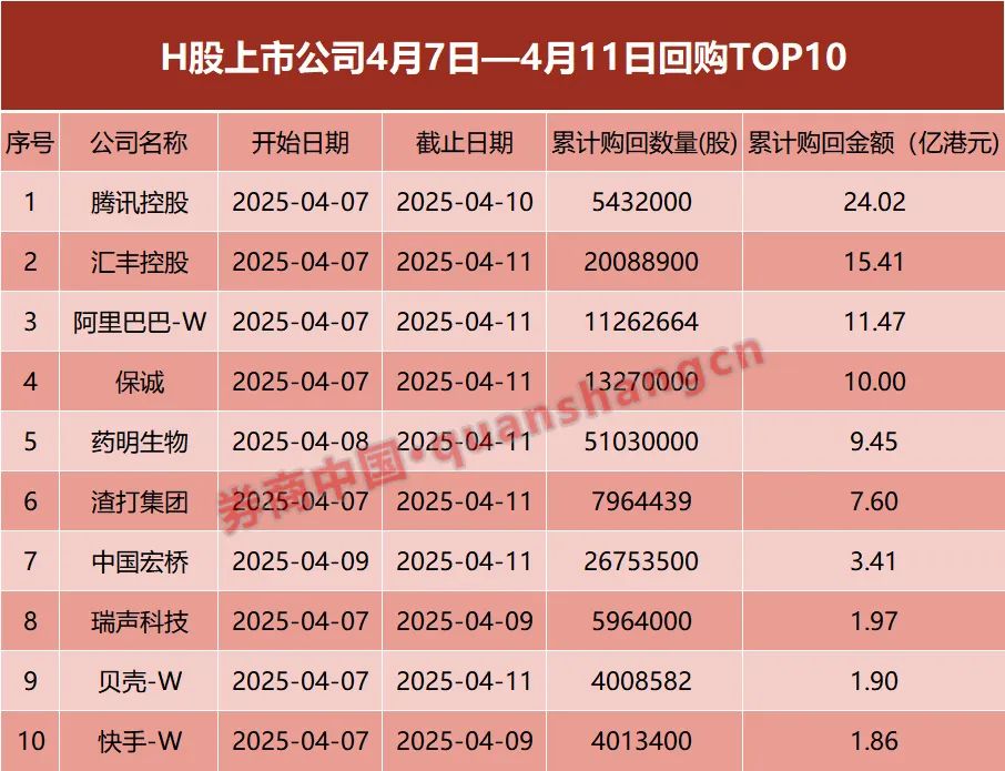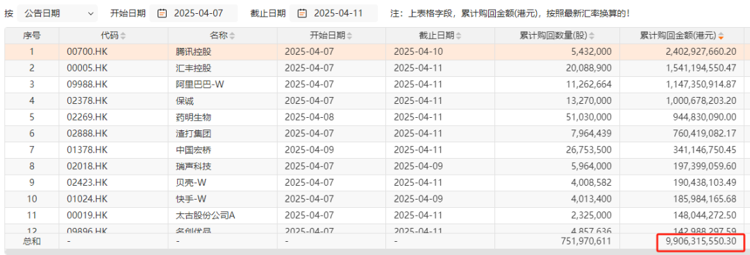 这意味着,港股上市公司无论是回购总额还是单日回购金额,在4月7日至4月11日当周都环比大幅增加。