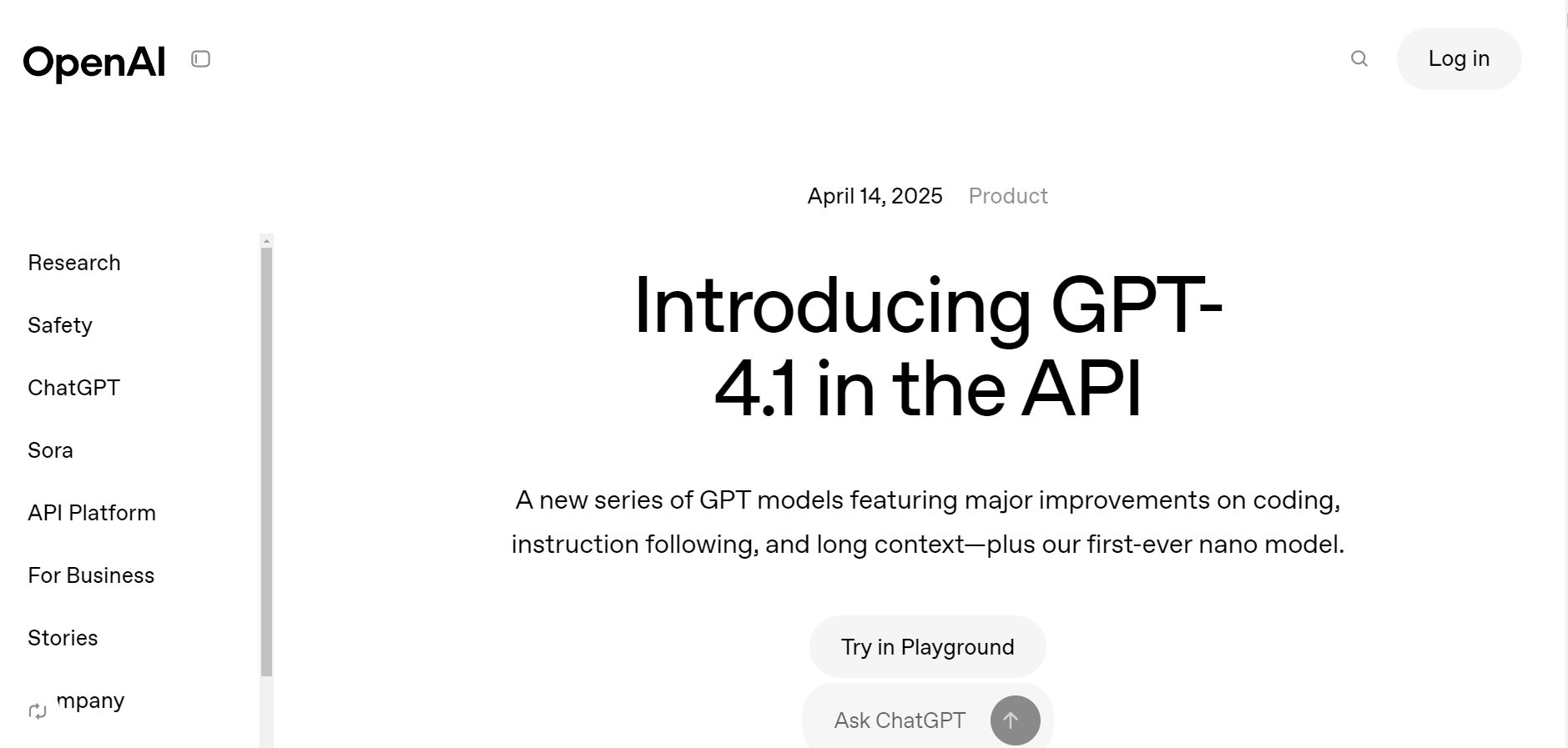 北京时间4月15日凌晨1点,OpenAI进行了技术直播发布了最新模型——GPT-4.1。