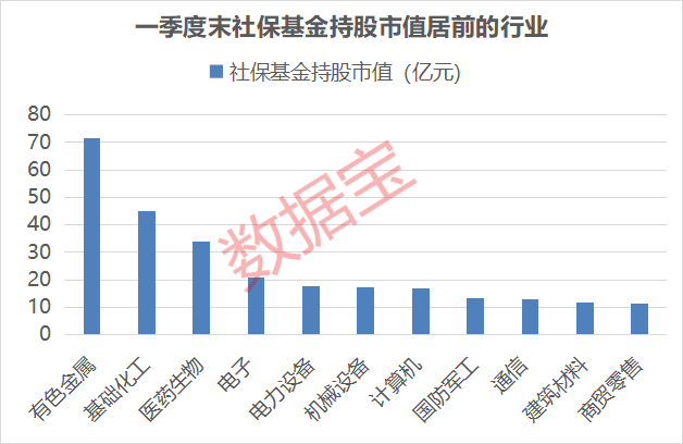 从行业来看,社保基金重仓股中基础化工行业个股数量最多,共有17只;医药生物行业紧随其后,为15只。从持股市值来看,有色金属行业社保基金持股市值最高,合计达到71.53亿元;基础化工、医药生物行业社保基金持股市值分别为44.89亿元、33.93亿元。