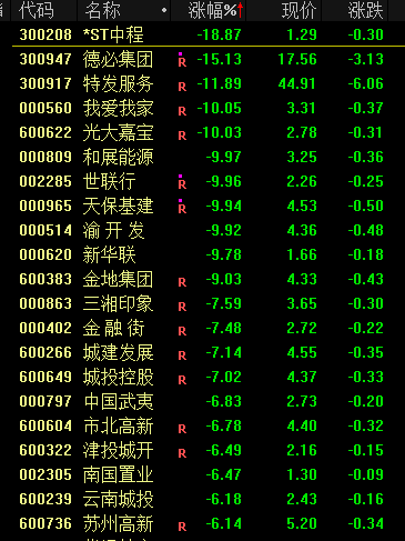 地产股集体大跌,渝开发、天保基建等多股跌停。