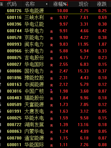 电力股延续强势,华电能源、华电辽能、三峡水利、华银电力等多股涨停。