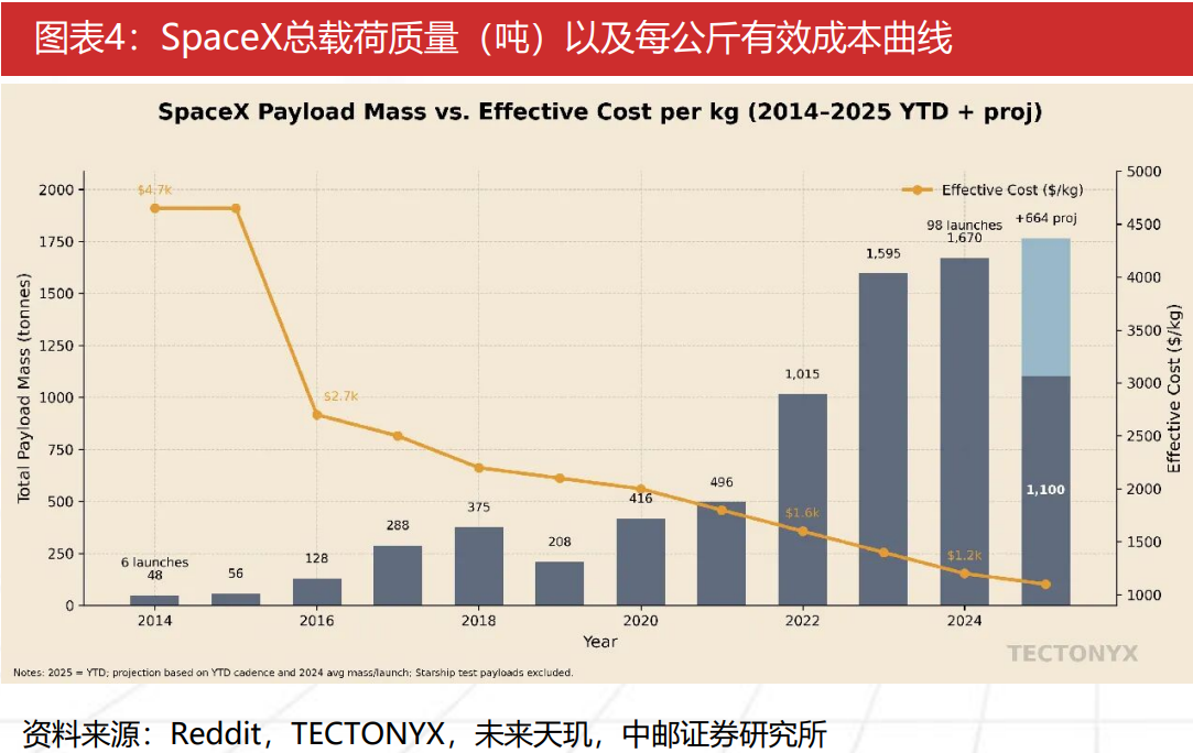 中邮证券表示,当前,行业正遵循SpaceX以“猎鹰9”(可重复使用下成本或低于千美元/kg,考虑运力提升,成本有望进一步下降)所验证的“低成本、高频次”技术范式。我国已将商业航天提升至“航天强国”的战略高度,并规划万星星座以竞逐太空经济制高点。为迎头赶上,我国必须攻克发射成本高、频次低、运力有限等瓶颈。