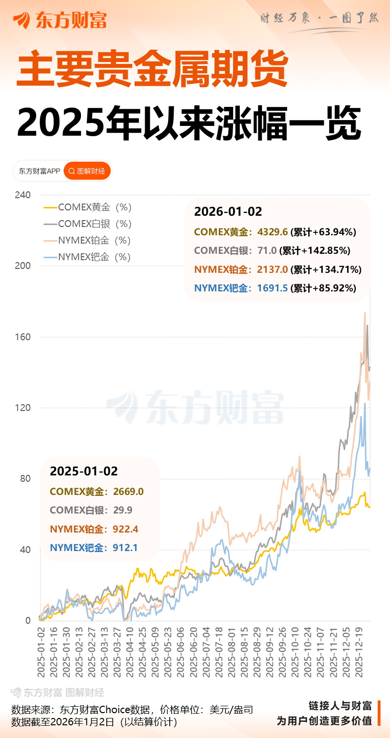 去年,贵金属价格大幅上涨,现货白银和现货黄金分别上涨了约148%和约65%,创下了自1979年以来的最大年度涨幅,甚至超过了像英伟达、微软和苹果这样的科技巨头的股价涨幅。