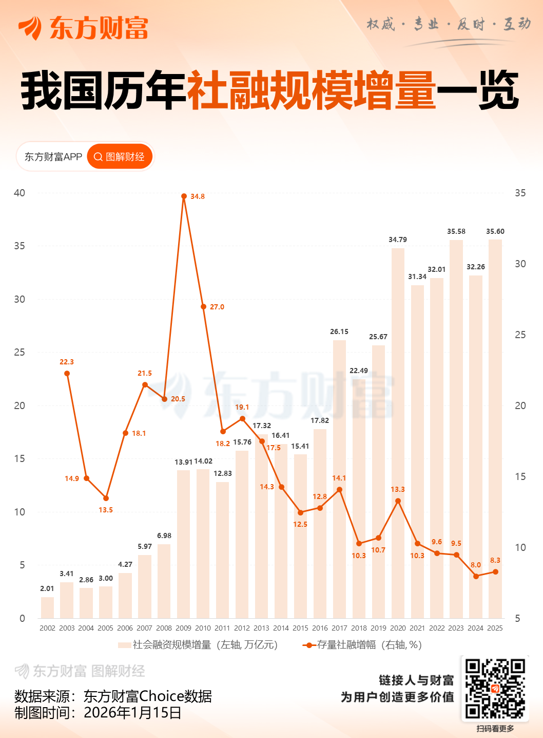 二、全年社会融资规模增量累计为35.6万亿元