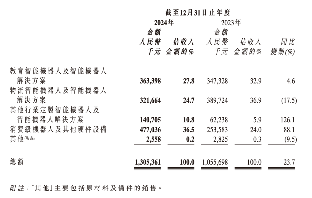 3月31日,“人形机器人第一股”深圳市优必选科技股份有限公司(优必选,9880.HK)举行了2024年业绩沟通会。优必选2024年全年实现营业收入13.05亿元,同比增长23.7%;亏损11.6亿元,较2023年的12.65亿元同比收窄8.3%;经调整亏损9.1亿元,2023年同期为8.2亿元;毛利从2023年的33.28亿元增至37.4亿元,同比增长12.4%;毛利率从31.5%降至28.7%。