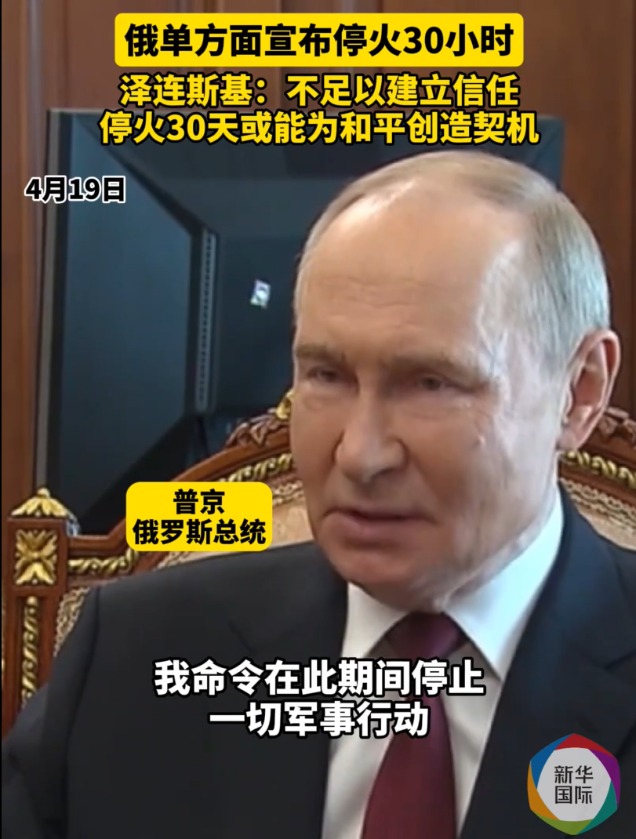 泽连斯基同日在社交媒体发文,提议将停火期限延长至20日复活节之后,称30小时不足以建立真正的信任。