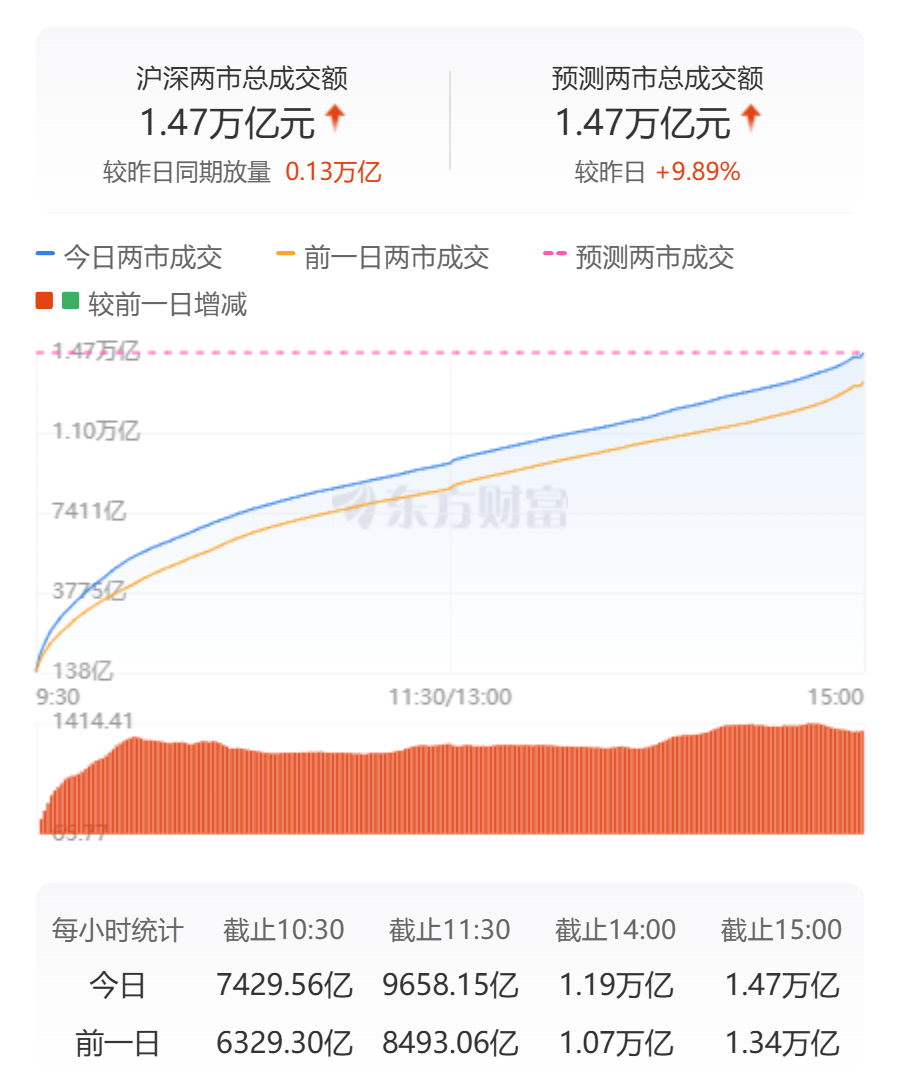 A股三大指数今日集体收涨,沪指涨0.80%,收报3342.67点;深证成指涨0.22%,收报10104.13点;创业板指涨0.51%,收报1996.51点。沪深两市成交额达到14683亿,较昨日放量1321亿。