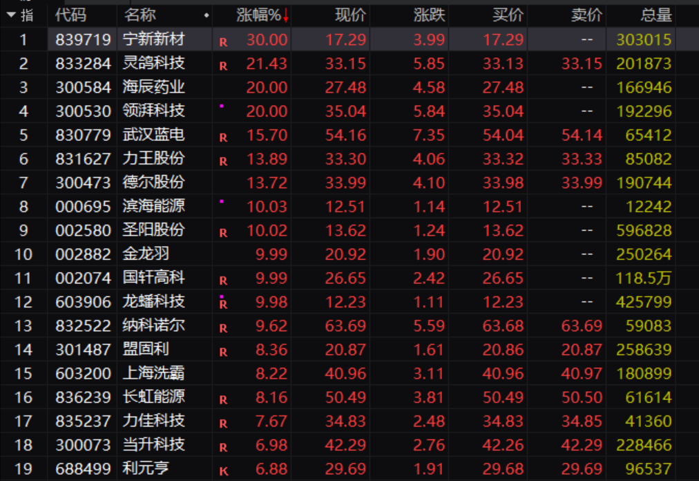 在此利好的加持之下,固态电池板块今日集体大爆发。宁新新材大涨30%,灵鸽科技大涨超20%,领湃科技也是20%涨停,金龙羽更是直线封板,武汉蓝电、德尔股份、力王股份等涨幅较大。
