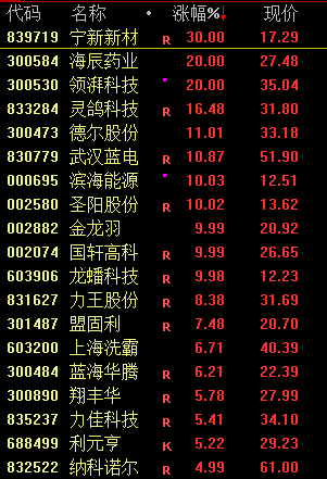 下跌方面,军工板块调整,成飞集成跌停。