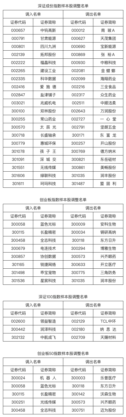 6月3日,深交所公告,根据指数编制规则,深圳证券交易所和深圳证券信息有限公司决定于2025年6月16日对深证成指、创业板指、深证100等指数实施样本股定期调整。