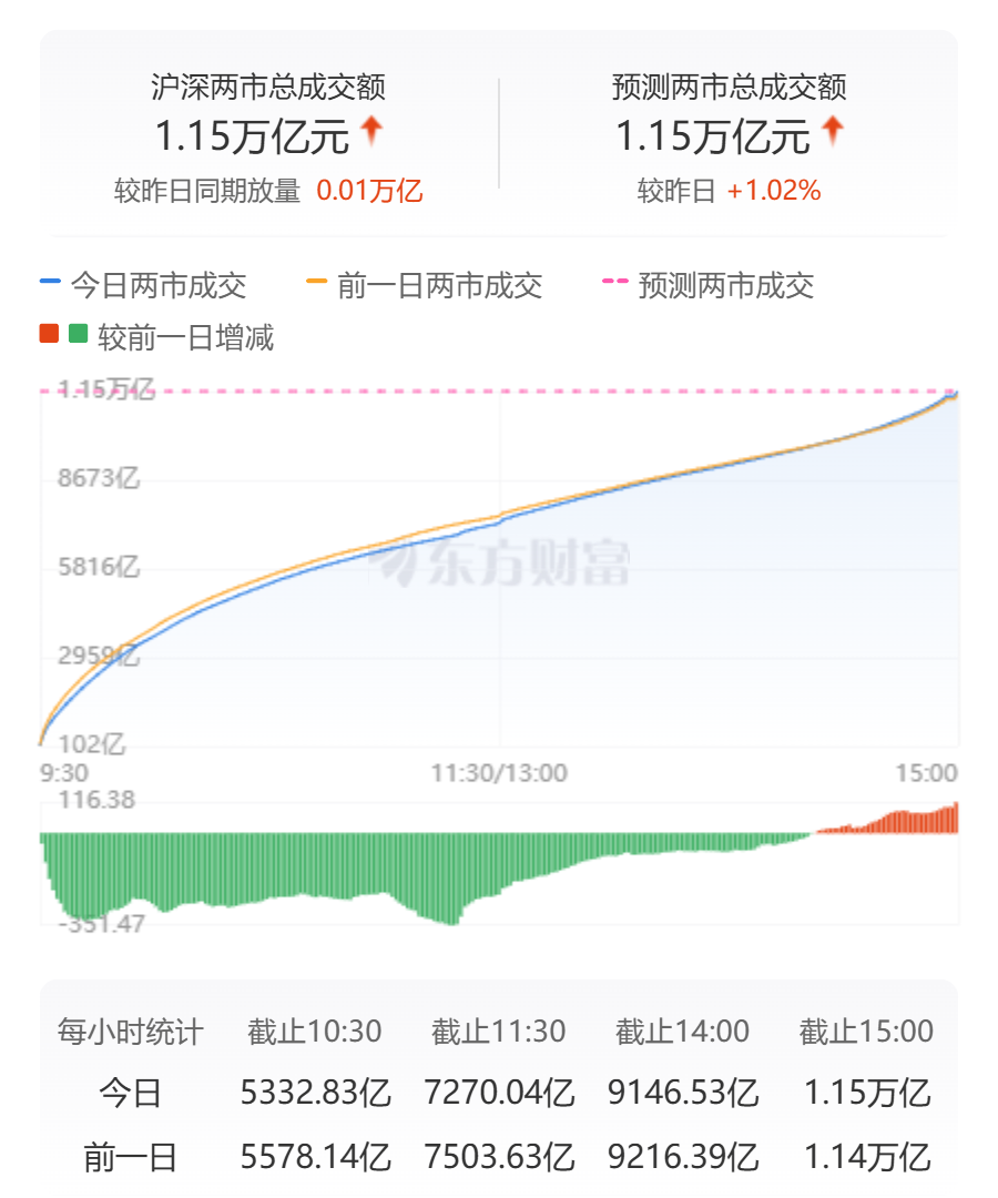 A股三大指数今日集体收涨,沪指涨0.42%,收报3376.20点;深证成指涨0.87%,收报10144.58点;创业板指涨1.11%,收报2024.93点。沪深两市成交额达到1.15万亿,较昨日放量116亿。