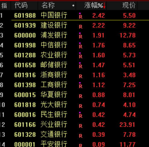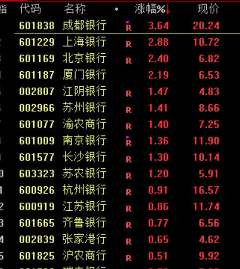 银行股震荡走强,农业银行、浦发银行、成都银行等多股创历史新高。