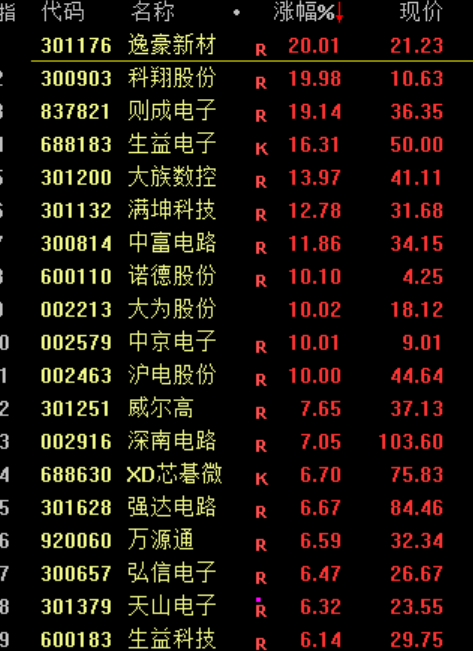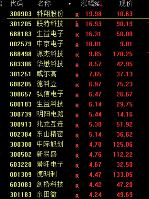 算力硬件股集体走强,PCB、CPO等方向领涨,逸豪新材、科翔股份、沪电股份等多股涨停。