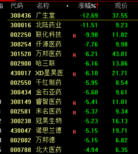 下跌方面,创新药概念股走低,广生堂跌超10%。