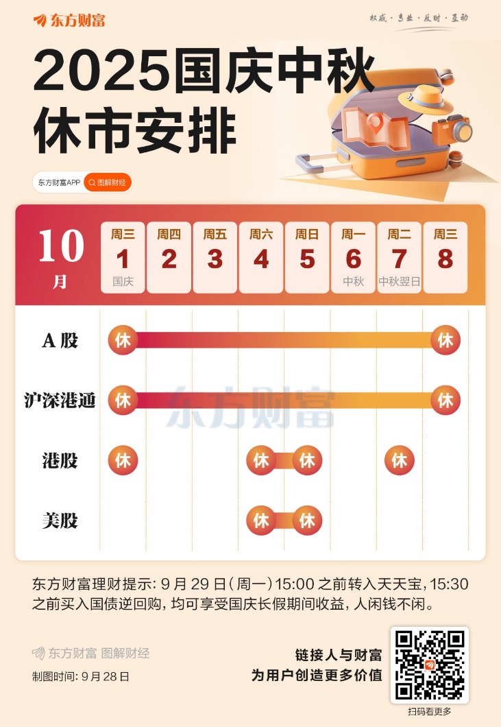 A股10月1日~8日休市,10月9日(星期四)起照常开市。