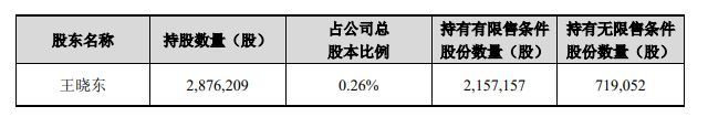 澎湃新闻注意到,这意味着王晓东将套现其直接持有的全部无限售条件股份。