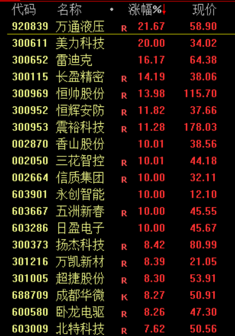 机器人概念股午后爆发,五洲新春、三花智控等十余股涨停。